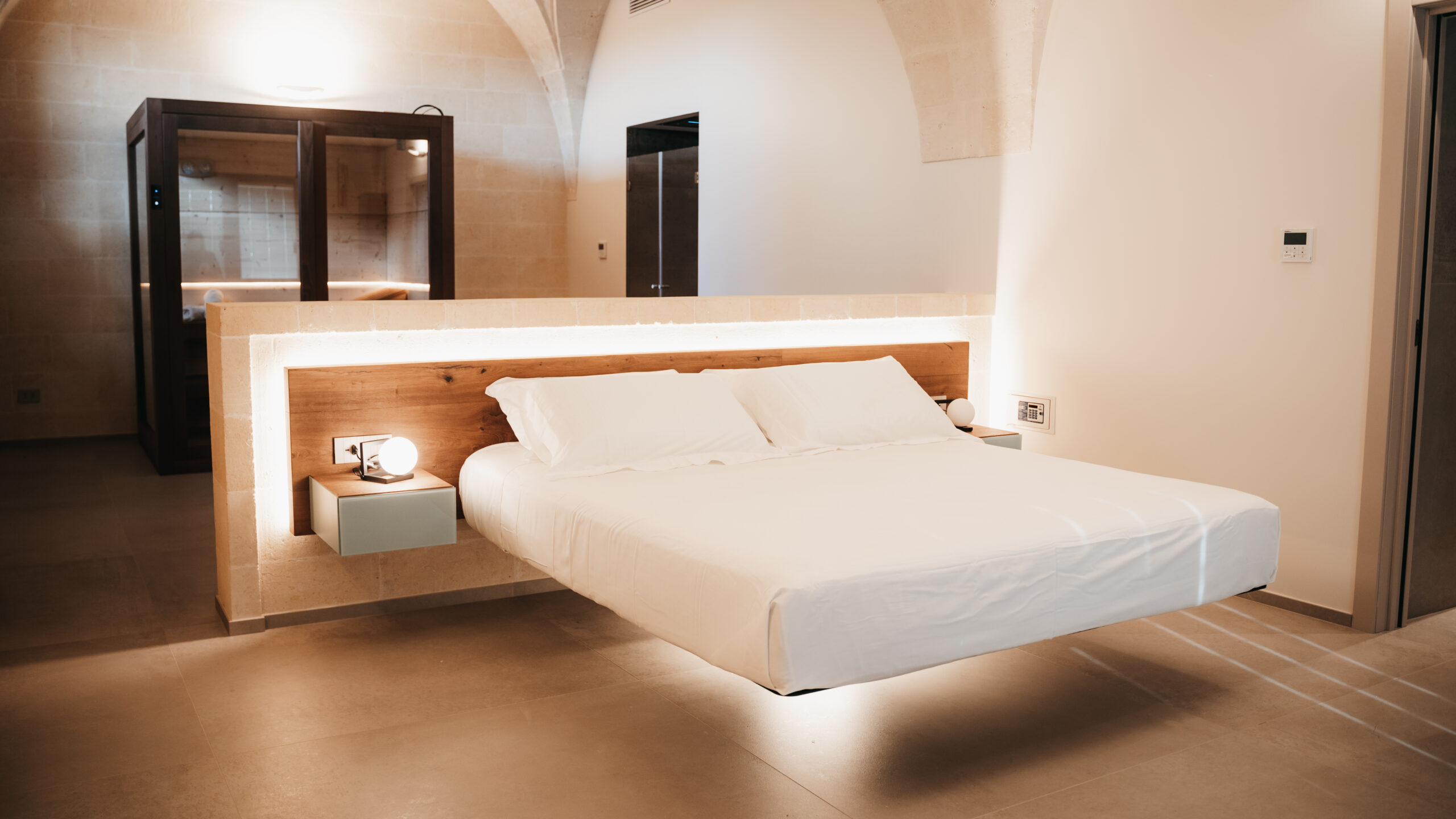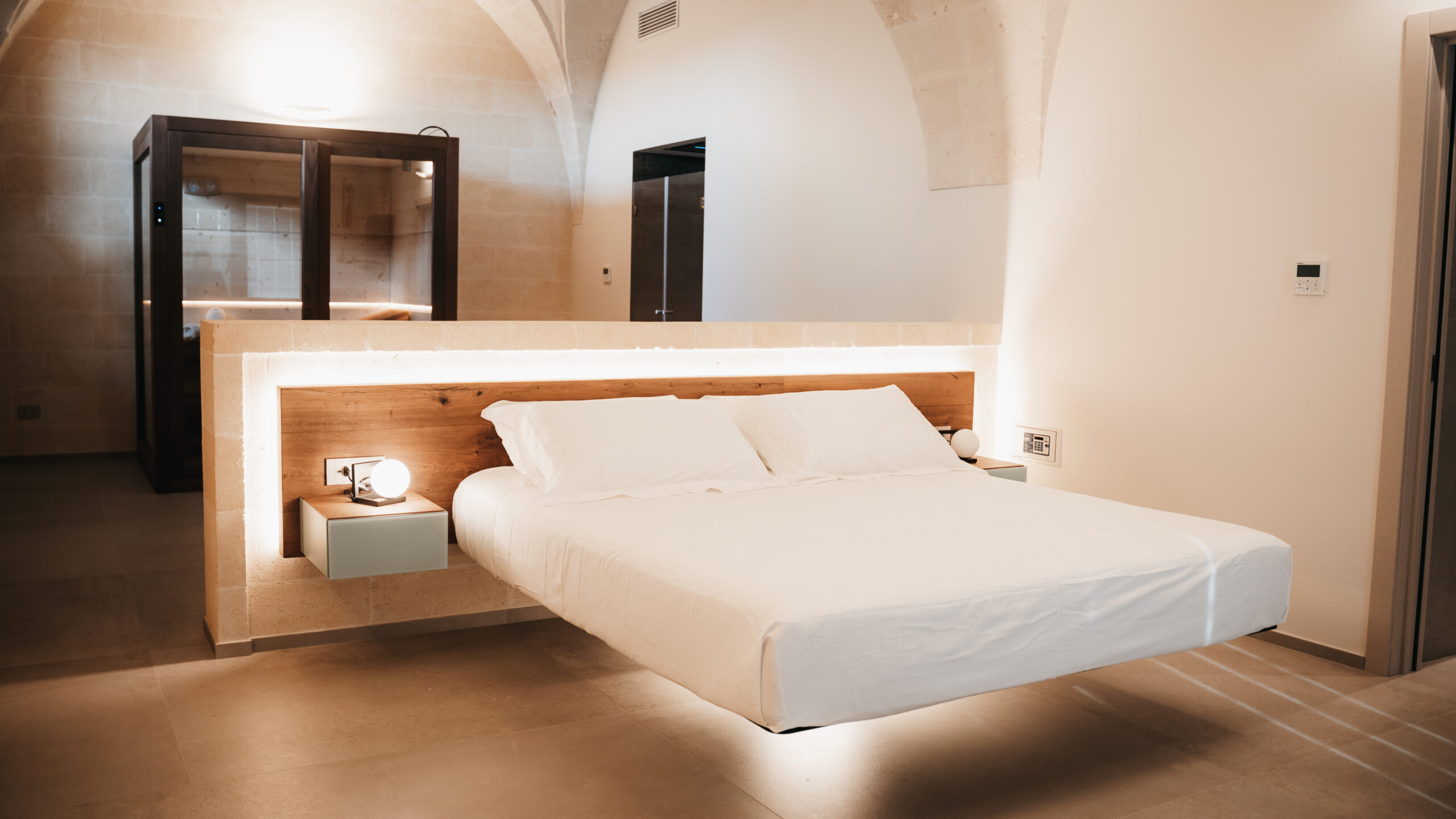 Le camere sono progettate e realizzate per fornire il massimo comfort e benessere. Arredate con uno stile contemporaneo e minimal mixato all’architettura antica della struttura, sono corredate di tutti gli elementi necessari per un soggiorno in completo relax. I nomi delle camere riprendono le tipologie di olive tipiche del territorio mediterraneo per connettere, fin dalla prenotazione, gli ospiti con un luogo ricco di meraviglie naturalistiche e paesaggistiche.